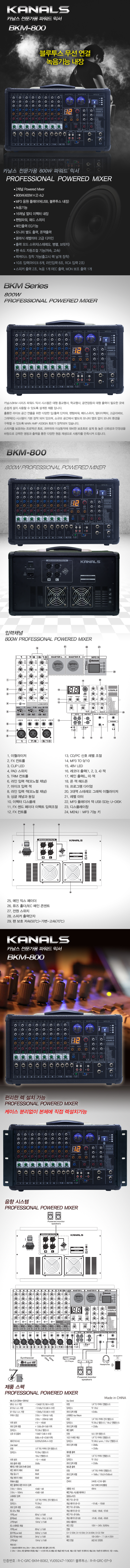카날스 BKM-800 블루투스 USB 녹음기능 파워 믹서 앰프